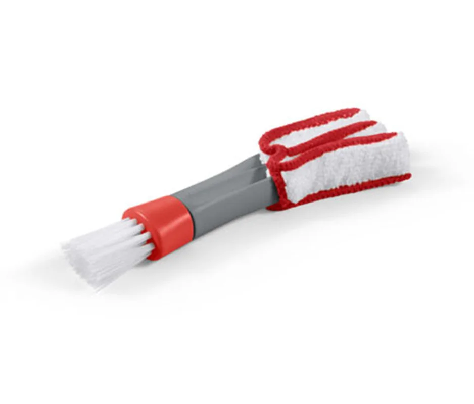براش چندکاره تمیز کننده انواع دریچه چیبو Tchibo یک ابزار تمیزکننده هوشمند و دو منظوره است که برای کارهای تمیزکاری متنوع و کارآمد طراحی شده است. این ابزار کوچک اما قدرتمند دو طرفه دارای ویژگیهای منحصر به فردی است که به شما کمک میکند تا بهترین نتایج در تمیزکاری مساحات مختلف را بدست آورید.یکی از ویژگیهای مهم این برس، دارا بودن دو طرف با کاربردهای متفاوت است. یک طرف دارای پوشش Microfaser (میکروفایبر) با قابلیت جدا شدن و شستشو است. این پوشش ایدهآل برای تمیزکاری دقیق و کارآمد سطوح مختلف میباشد، از جمله لوازم خودرو، چرمها، و شکافهای تهویه است. این بخش از برس به طور همزمان بازوی بالا و پایین دو لولهی لاملها را تمیز میکند.طرف دیگر این ابزار دارای موی نرم است که به شما امکان میدهد تا به مناطق دشوار دسترسی پیدا کنید. این قسمت از برس عالی برای تمیزکاری از مکانهایی مثل آرامبندیهای خودرو یا صفحهکلیدهاست.