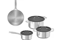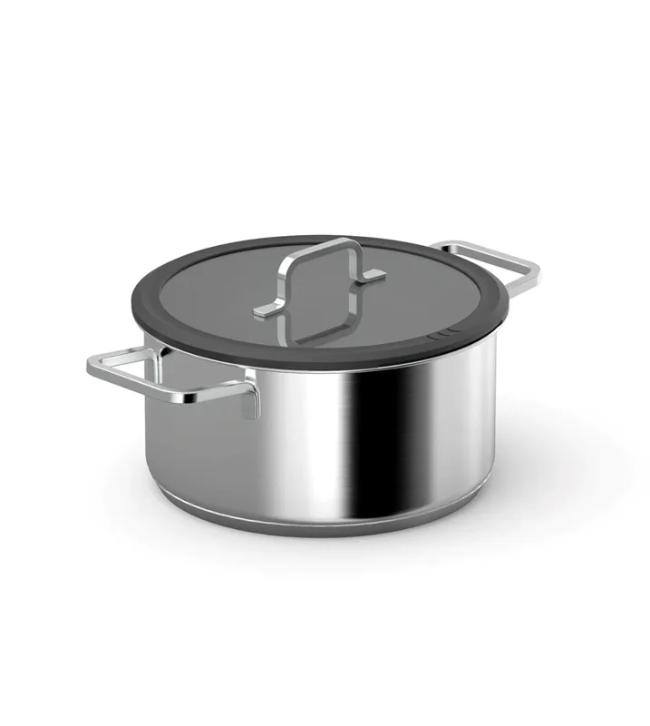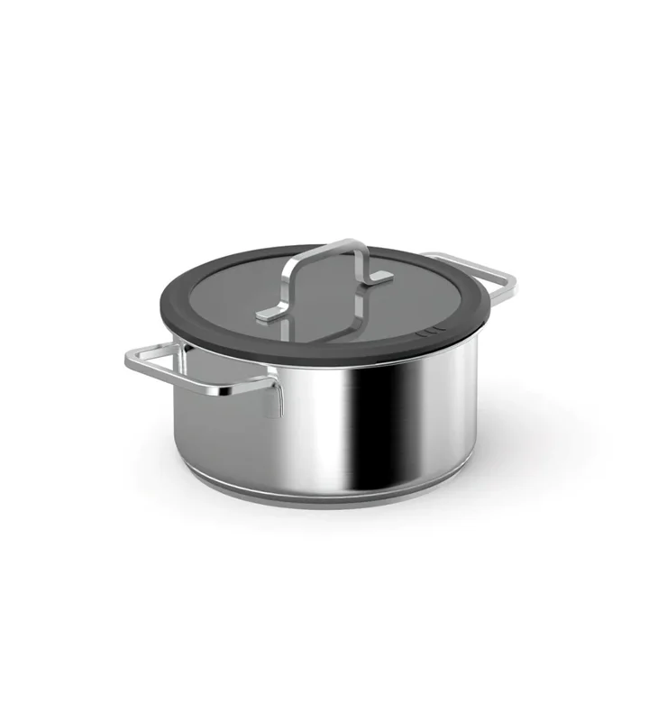 ست ۷ تکه استیل Berghoff Culina یک مجموعه باکیفیت از فولاد ضدزنگ ۱۸/۱۰ است که در کنار قابلمهها و ماهیتابههای متنوع، دربهای شیشهای همراه با لبههای سیلیکونی نیز دارد؛ این لبهها از نفوذ بخار و رطوبت جلوگیری کرده و آببندی ملایمی ایجاد میکنند. کف چندلایه آن باعث توزیع یکنواخت حرارت شده و دستههای ارگونومیک کاربری راحتی را فراهم میکنند؛ ضمن اینکه با اکثر اجاقها از جمله القایی سازگار است و در کنار کارایی، جلوهای شیک به آشپزخانه میبخشد.