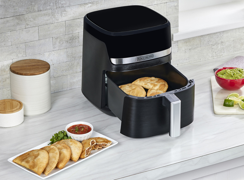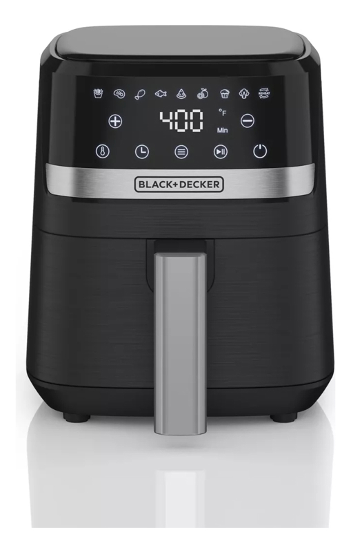 سرخکن بدون روغن BLACK+DECKER Purifry 2QT یک دستگاه چندمنظوره و جمعوجور است که قابلیتهای متنوعی مانند سرخکردن، پخت، برشتهکردن، خشککردن مواد غذایی و گرم نگهداشتن غذا را در خود جای داده است. این دستگاه با استفاده از فناوری Air Crisp، غذاهایی با بافت ترد و طعم مشابه سرخکردن عمیق اما با حداقل یا بدون روغن تولید میکند. عملکرد آن تا دو برابر سریعتر از فرهای سنتی است و دارای ۹ برنامه پیشفرض لمسی برای انواع غذاها میباشد. سبد نچسب و قطعات قابل شستوشو در ماشین ظرفشویی تمیزکردن را آسان میسازند، و ظرفیت ۲ کوارت آن برای تهیهی وعدهای مناسب دو نفر طراحی شده است.
