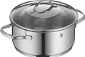 سرویس قابلمه WMF مدل Provence plus شامل 5 تکه از استیل ضد زنگ Cromargan 18/10 و شیشه با رنگ نقرهای است. این مجموعه شامل قابلمههای با اندازههای مختلف و یک تابه بوده و مناسب برای انواع اجاقها از جمله القایی است. دارای لبه پهن برای ریختن بدون چکه و فناوری Transtherm-Allherdboden برای توزیع یکنواخت حرارت است. این قابلمهها مقاوم در برابر زنگزدگی، طعمدهی و اسید بوده و قابلیت شستشو در ماشین ظرفشویی و استفاده در فر را دارند. تولید شده در آلمان، این سرویس قابلمه کیفیت و دوام بالایی دارد.