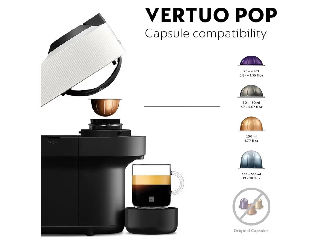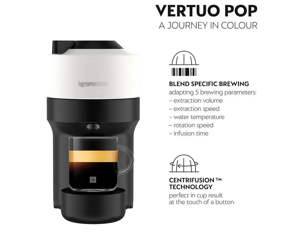 قهوهساز Nespresso Vertuo Pop با طراحی مینیمال و فناوری هوشمند، تجربهای حرفهای از طعم قهوه را تنها با یک لمس ارائه میدهد. این دستگاه با سیستم Vertuo و فناوری Centrifusion™، کپسول را تا ۷۰۰۰ دور در دقیقه میچرخاند تا کرمای غلیظ و طعمی بینقص ایجاد کند. قابلیت تشخیص خودکار کپسول، تنظیم هوشمند حجم آب و زمان دمآوری، گرم شدن سریع در کمتر از ۳۰ ثانیه، خاموشی خودکار و مخزن آب با ظرفیت مناسب، آن را برای استفاده روزمره در خانه یا محل کار ایدهآل میکند. رنگ سفید نارگیلی و طراحی جمعوجور، جلوهای مدرن و شیک به آشپزخانه شما میبخشد.