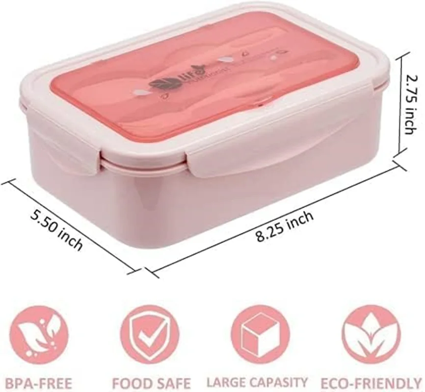 این لانچ باکس دارای یک ست شامل یک قاشق و چنگال داخلی، یک جعبه بنتو با درپوش و سینی قابل جداشدن با 3 تقسیمبندی است. این جعبه از مواد دوستدار محیطزیست، بدون BPA و از جنس پلیپروپیلن ساخته شده است. دارای قفل هواگرد و حلقه سیلیکونی است که جلوی نشت غذا را میگیرد و برای کودکان ساده باز میشود. محفظههای جداپذیر کمک میکنند مواد غذایی جدا شده و مانع از مخلوط شدن طعمها میشوند. این جعبه میتواند در مایکروویو، فریزر و ماشین ظرفشویی استفاده شود و با ولتاژ جهانی سازگار است. مناسب برای سفرها، کار، پیکنیک، ورزش، و ناهار در محل کار یا مدرسه.