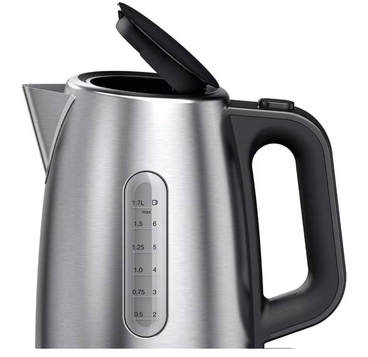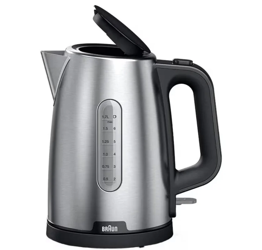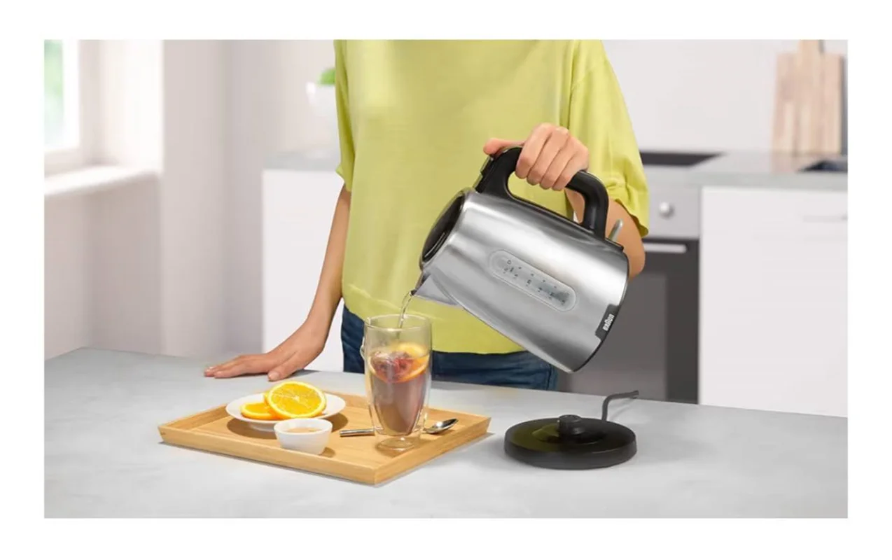 کتری برقی براون مدل WK1500BK با طراحی مدرن و بدنهی استیل ضدزنگ، ترکیبی از زیبایی و کارایی را به آشپزخانه شما میآورد. با توان ۲۲۰۰ وات، آب را سریع جوش میآورد و ظرفیت ۱.۷ لیتری آن برای استفادهی خانواده مناسب است. فیلتر ضدرسوب، آب سالم و زلال را تضمین میکند و سیستم ایمنی هوشمند چندمرحلهای خیال شما را از استفادهی ایمن راحت میکند. پایهی چرخش ۳۶۰ درجه و دستهی ارگونومیک کار با کتری را آسان میکند. این مدل با ترکیب رنگ مشکی و استیل برسخورده، جلوهای لوکس به آشپزخانه میبخشد.