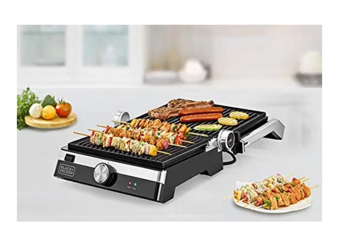 گریل بلک اند دکر مدل CG2000-B5 با طراحی لوکس مشکی و نقرهای، انتخابی ایدهآل برای خانوادههای پرجمعیت و مهمانیها است. این گریل با قابلیت باز شدن ۱۸۰ درجه فضای پخت را دو برابر میکند و با تنظیم ارتفاع در ۵ سطح مختلف، از ساندویچهای نازک تا استیکهای ضخیم را بهطور دقیق و حرفهای آماده میکند. دارای کنترل دمای متغیر، صفحات نچسب و قابل جدا شدن برای شستشوی آسان و سینی جمعآوری چربی برای پخت سالمتر است. دسته خنک و ایمن، جابهجایی بدون نگرانی را ممکن میکند و عملکرد سریع و یکنواخت آن بهترین طعم و بافت غذایی را تضمین میکند.
